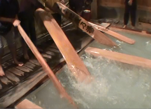 湯もみは、時間湯での湯治においては、欠かせないものです。 湯の温度を下げりばかりでなく、入浴前の準備運動、湯の成分の均一化など、湯治における複合的な意味合いがあります。